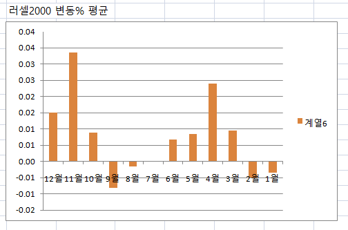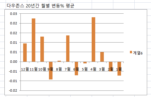 1. 2000년~2020년 주요 지수 월별 변동% 평균값 차트