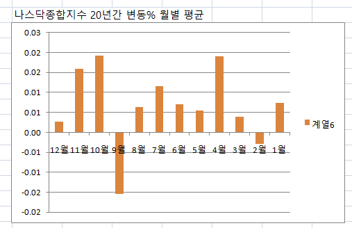 보통 실적발표가 있는 1월, 4월, 7월, 10월은 지수가 크게 상승하는 것을 알 수 있습니다. ^^