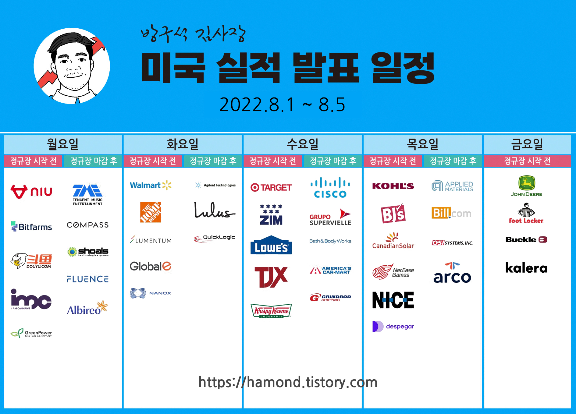 2022.08.07 - [주식 정보/미국) 주식 일정 체크] - 미국 주식 2분기 어닝 일정 및 결과(22년 8월 8일~12일)