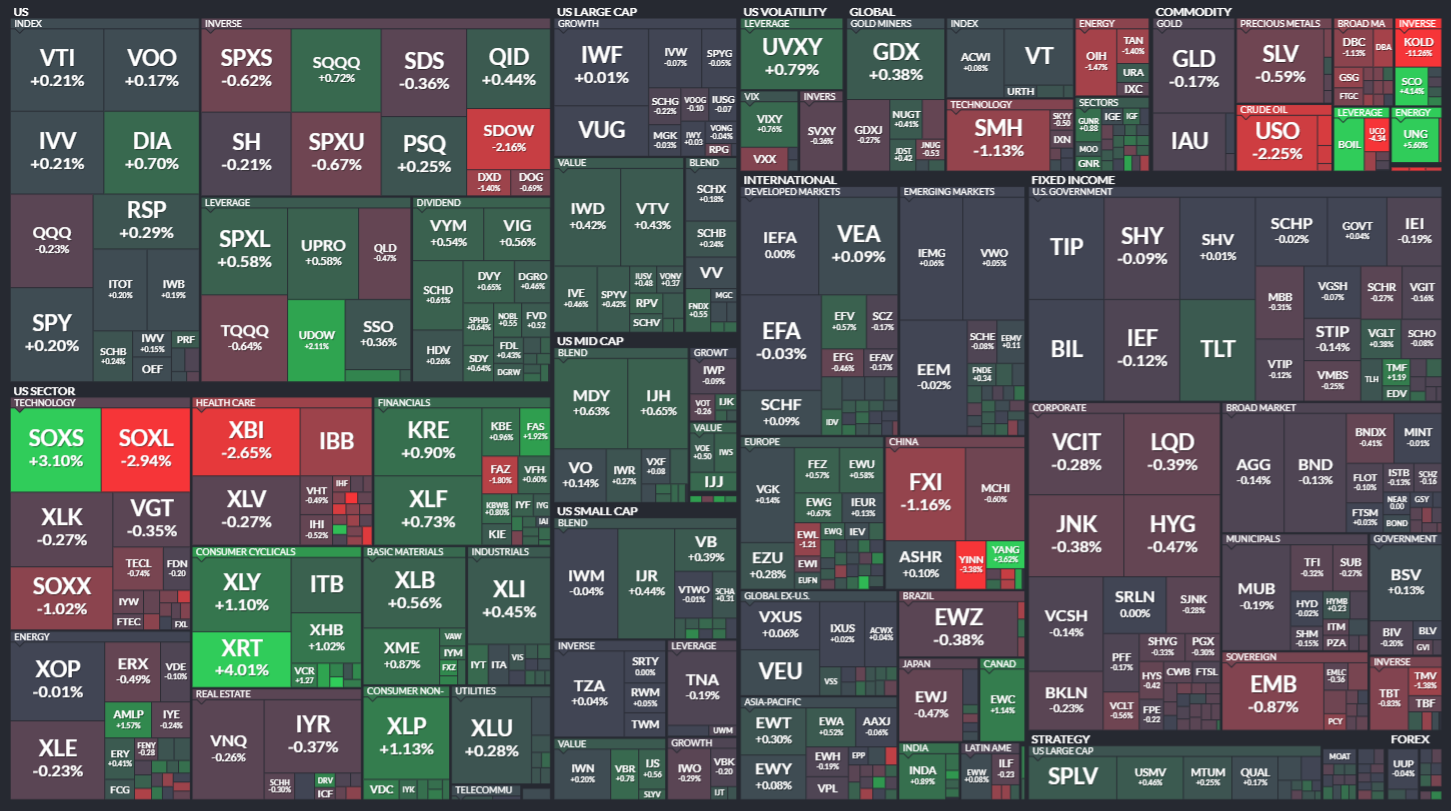 월마트와 홈디포가 긍정적인 실적을 발표하면서, 이와 관련된 자유소비재 관련 ETF인 XLY, XRT 등이 상승하는 모습을 보였습니다.