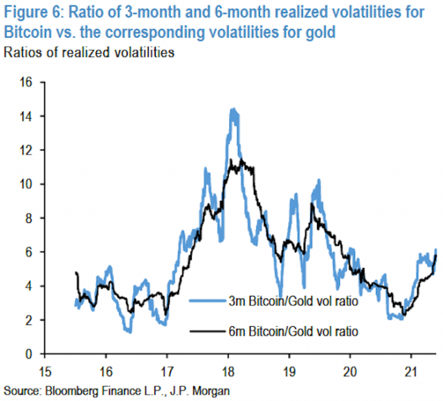JP모건은 기관투자가의 암호화폐 시장 진입을 가로막는 큰 요인은 볼라틸리티이며 특히 골드와 비교한 가격변동 크기는 중요한 요소라고 지적했다.상술한 적정 가격은, 이 생각을 바탕으로 하고 있다.