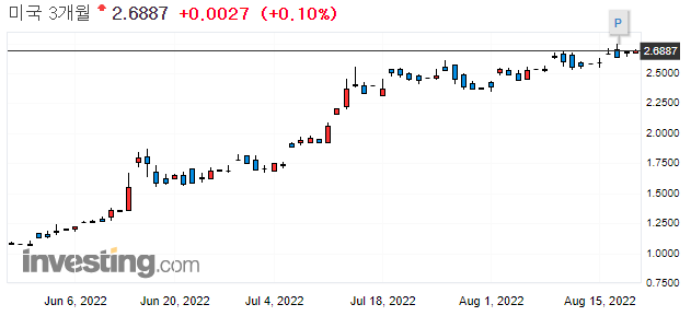 2022.08.19 - [주식 정보/미국) 시황 체크] - 미국 채권 시황) 연준 의원들 발언과 채권 시장 상황 _22년8월19일