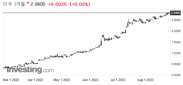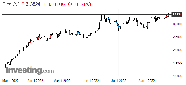 물론 이번 채권 가격 하락은 9월 예정되어 있는 QT를 의식한 움직임이라는 이야기도 있으며, 잭슨홀 미팅 이후, 강력한 긴축 기조에 대한 발언이 있을 것을 예상해서 사전에 하락한다는 이야기도 있습니다.