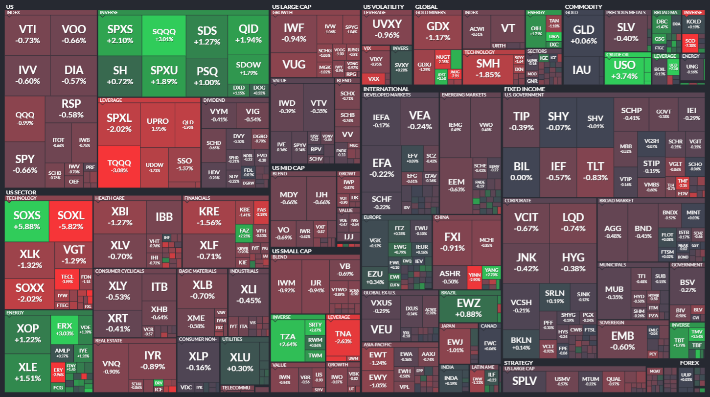 미국 ETF의 등락률을 통해서 시장의 흐름을 살펴봅니다. 특히 주가 MAP과는 다르게 채권이나 원자재, 개발도상국 지수 추종 ETF 등도 살펴볼 수 있기 때문에 좀 더 큰 시장의 흐름을 알 수 있습니다.