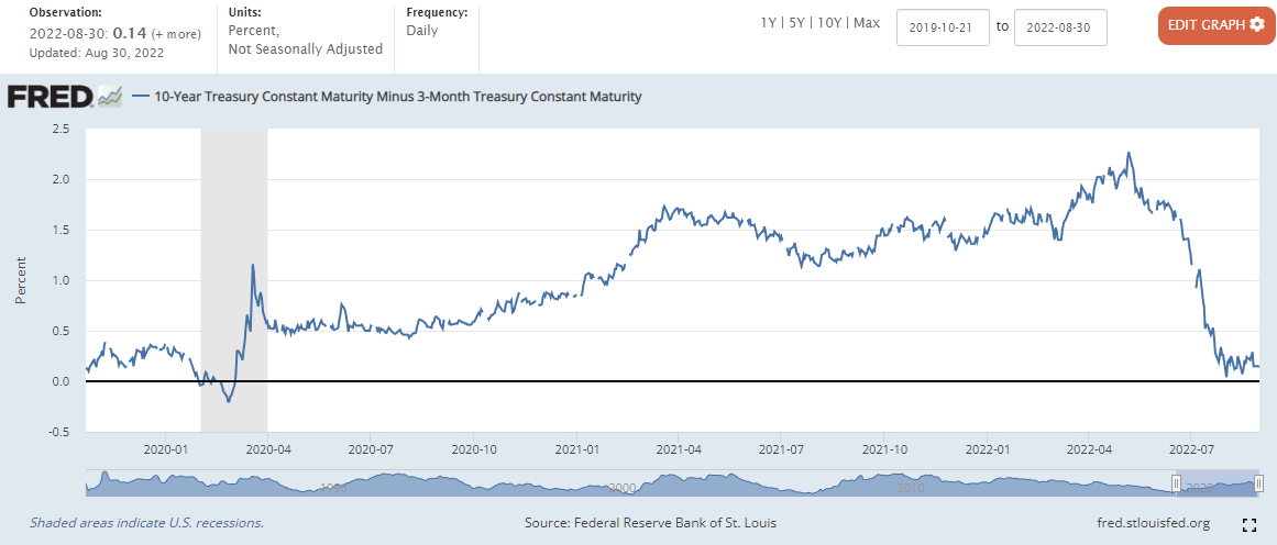 → 8월 17일 FOMC회의록이 발표된 후, 10년물 국채 수익률이 크게 상승하면서, 장단기 금리차 역전 현상이 아주 조금은 완화되었습니다.
