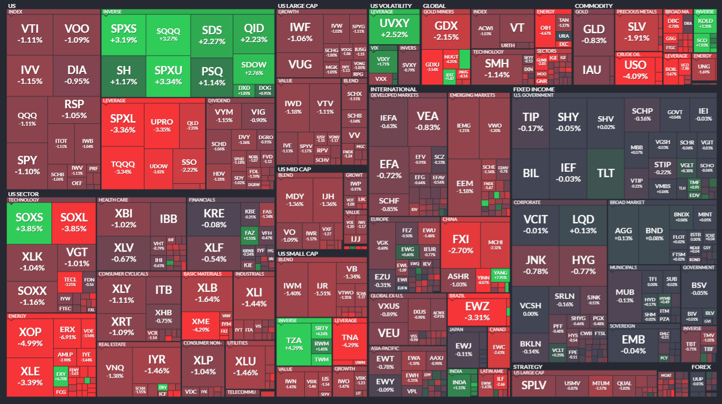 미국 ETF의 등락률을 통해서 시장의 흐름을 살펴봅니다. 특히 주가 MAP과는 다르게 채권이나 원자재, 개발도상국 지수 추종 ETF 등도 살펴볼 수 있기 때문에 좀 더 큰 시장의 흐름을 알 수 있습니다.