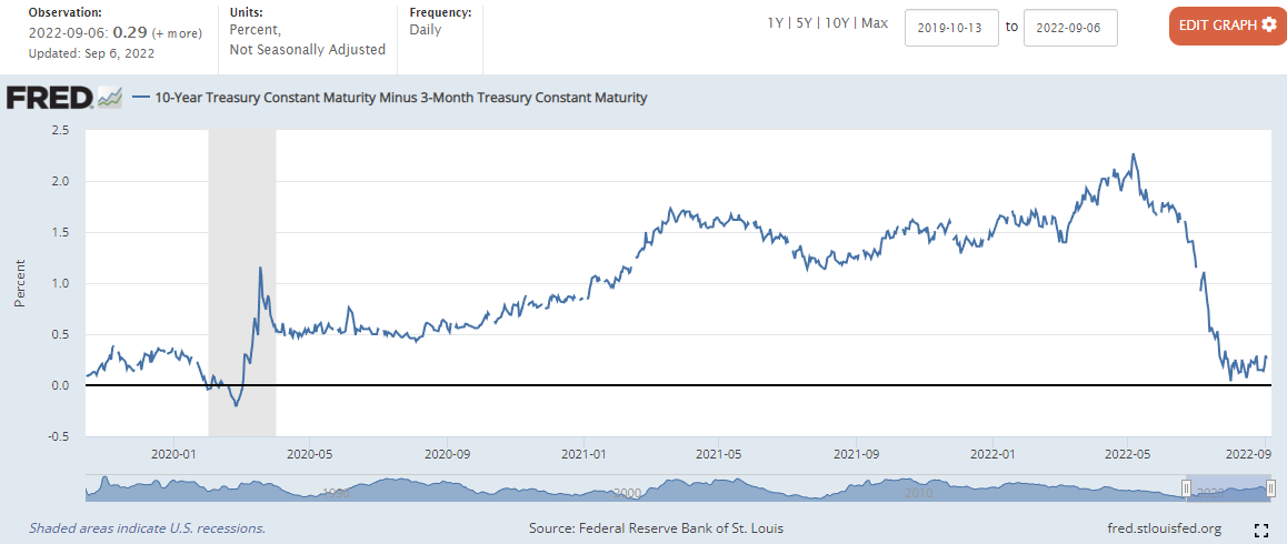 → 8월 17일 FOMC회의록이 발표된 후, 10년물 국채 수익률이 크게 상승하면서, 장단기 금리차 역전 현상이 아주 조금은 완화되었습니다.
