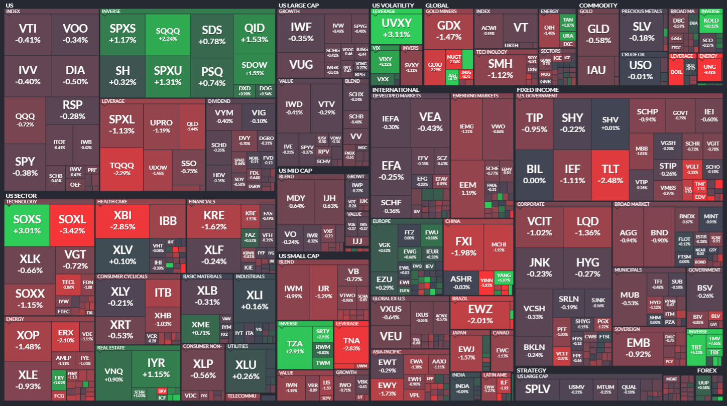 미국 ETF의 등락률을 통해서 시장의 흐름을 살펴봅니다. 특히 주가 MAP과는 다르게 채권이나 원자재, 개발도상국 지수 추종 ETF 등도 살펴볼 수 있기 때문에 좀 더 큰 시장의 흐름을 알 수 있습니다.