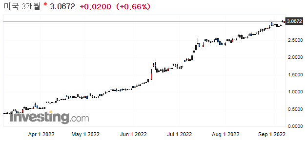 | 미국 채권 시황) 9월 미국 금리 75bp 인상 확률 91% 채권 시장은? _22년9월10일 (1) | 2022.09.10 |