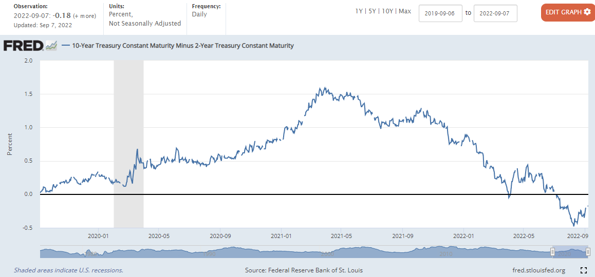 → 8월 17일 FOMC회의록이 발표된 후, 10년물 국채 수익률이 크게 상승하면서, 장단기 금리차 역전 현상이 아주 조금은 완화되었습니다.