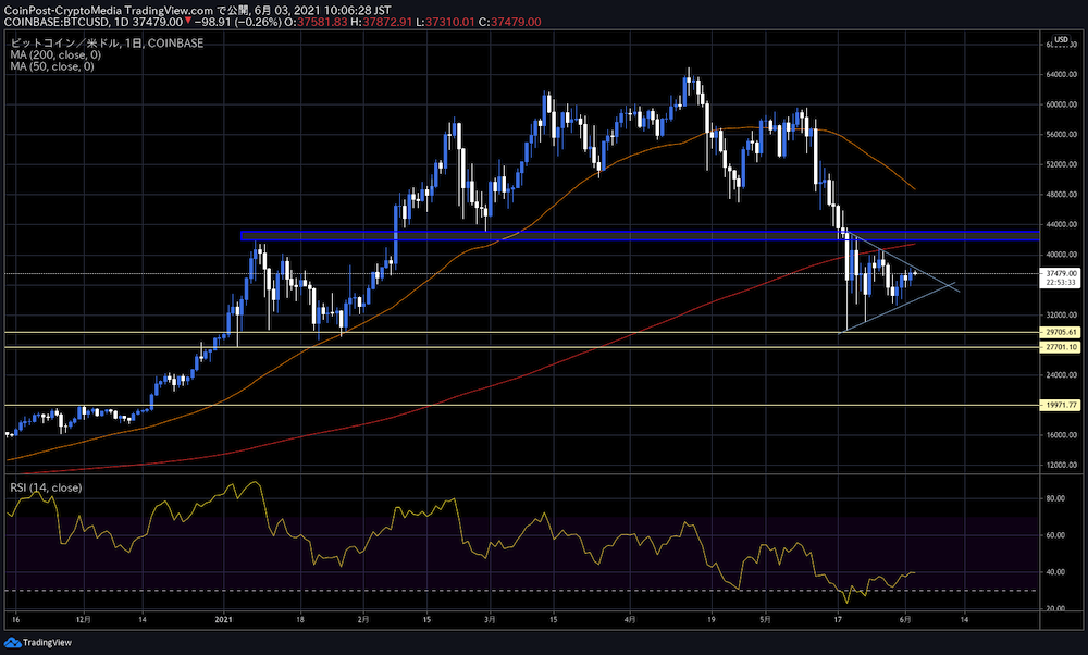 다만 주석으로서 5월 26일의 최고가 40,900달러를 웃돌면 이 시나리오가 변경될 여지가 있다고 덧붙였다.