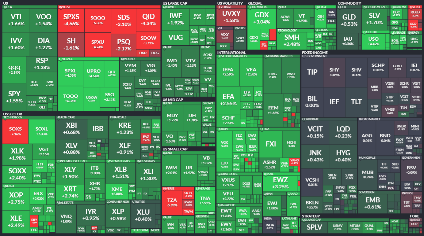 미국 ETF의 등락률을 통해서 시장의 흐름을 살펴봅니다. 특히 주가 MAP과는 다르게 채권이나 원자재, 개발도상국 지수 추종 ETF 등도 살펴볼 수 있기 때문에 좀 더 큰 시장의 흐름을 알 수 있습니다.