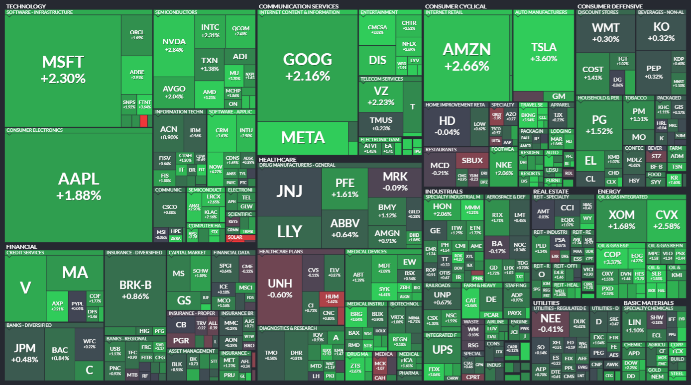 미국 S&P500에 속한 기업들의 주가 등락을 살펴봅니다. 같은 섹터 내에서도 개별 기업 이슈로 인해 주가가 서로 다르게 움직이는 것을 볼 수 있습니다. 특히 섹터 내 대장주, 주도주의 움직임을 통해 해당 섹터의 성장성을 가늠해보기 좋습니다.