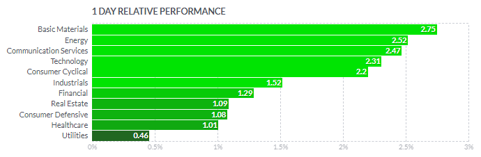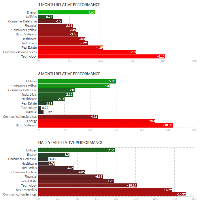 1일/한달/3달/반년 섹터별 등락률을 통해서, 시장 상황을 가늠해볼 수 있습니다.