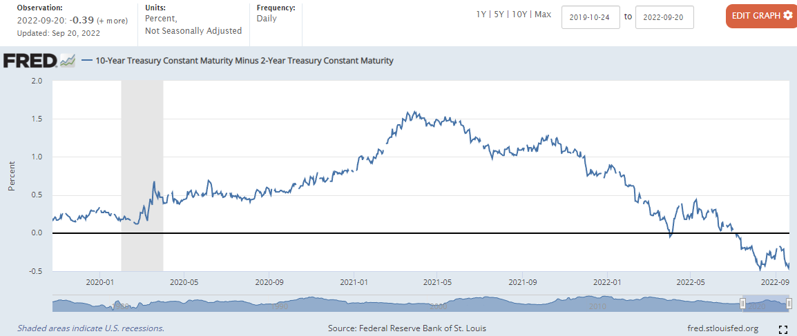 → 8월 17일 FOMC회의록이 발표된 후, 10년물 국채 수익률이 크게 상승하면서, 장단기 금리차 역전 현상이 아주 조금은 완화되었습니다.