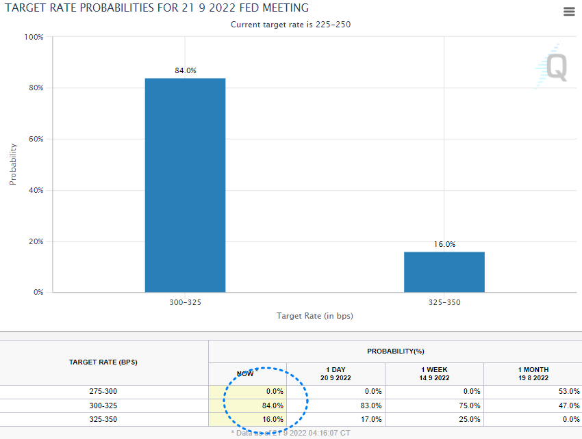 - 애틀랜타 연은의 보스틱 총재 : 현재 2.25~2.5%의 기준 금리는 경제활동을 늦추기에는 충분하지 않다. 9월까지 경제 지표들이 좋다면, 75bp 인상이 타당할 것