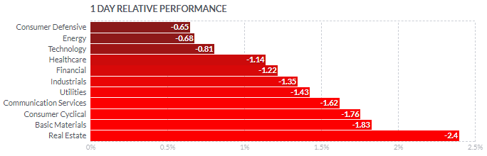 → 9월 16일 에너지 섹터가 가장 크게 하락한 것을 볼 수 있습니다. 올해 초부터 에너지 가격이 치솟으면서, 에너지 가격의 상승은 인플레이션을 자극하는 요인이며, 기술주의 하락을 이끄는 중요한 요소였습니다. 따라서, 에너지 섹터의 하락은 주가 상승으로 이어지고는 했었죠.(에너지 가격 하락이 인플레이션을 낮추기 때문입니다.)