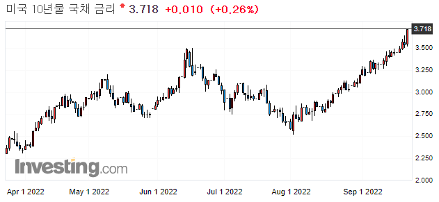 2022.09.23 - [주식 정보/뉴스 리뷰] - 미국 기업 뉴스) 미국 금리 급등 여파, 전 섹터 하락! _22년9월23일