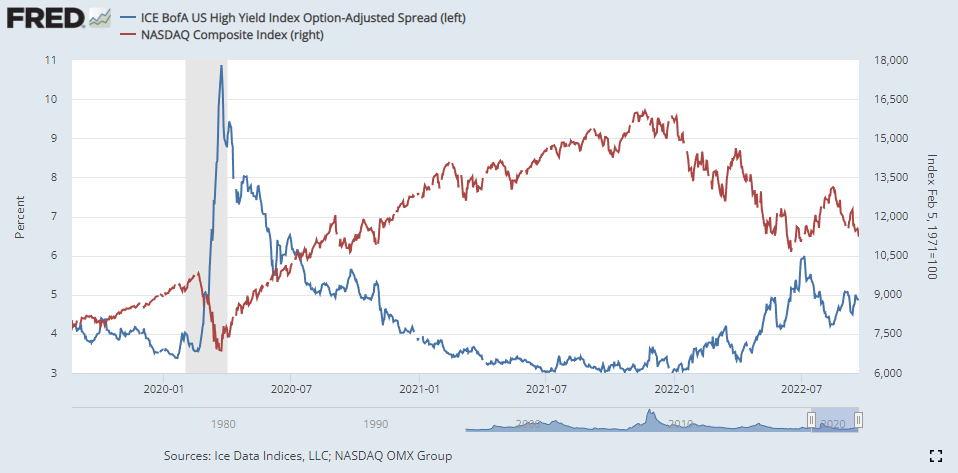 하이일드 채권 스프레드 : 하이일드 채권 수익률 에서 국채 수익률을 뺀 값으로, 이 값이 상승하면 시장이 위험하다는 신호로 볼 수 있습니다. 4% 이하로 하락해야 시장이 안정적인 것으로 판단합니다.
