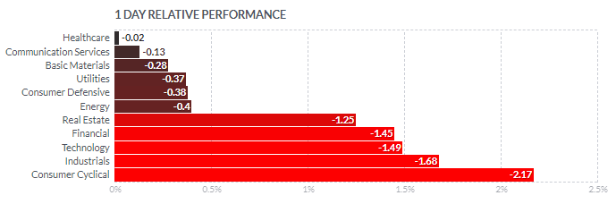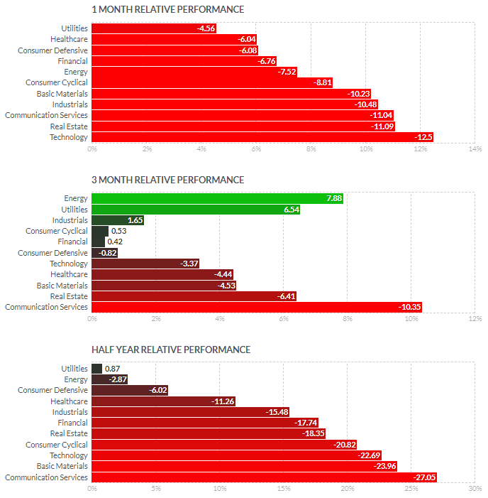 → 9월 16일 에너지 섹터가 가장 크게 하락한 것을 볼 수 있습니다. 올해 초부터 에너지 가격이 치솟으면서, 에너지 가격의 상승은 인플레이션을 자극하는 요인이며, 기술주의 하락을 이끄는 중요한 요소였습니다. 따라서, 에너지 섹터의 하락은 주가 상승으로 이어지고는 했었죠.(에너지 가격 하락이 인플레이션을 낮추기 때문입니다.)