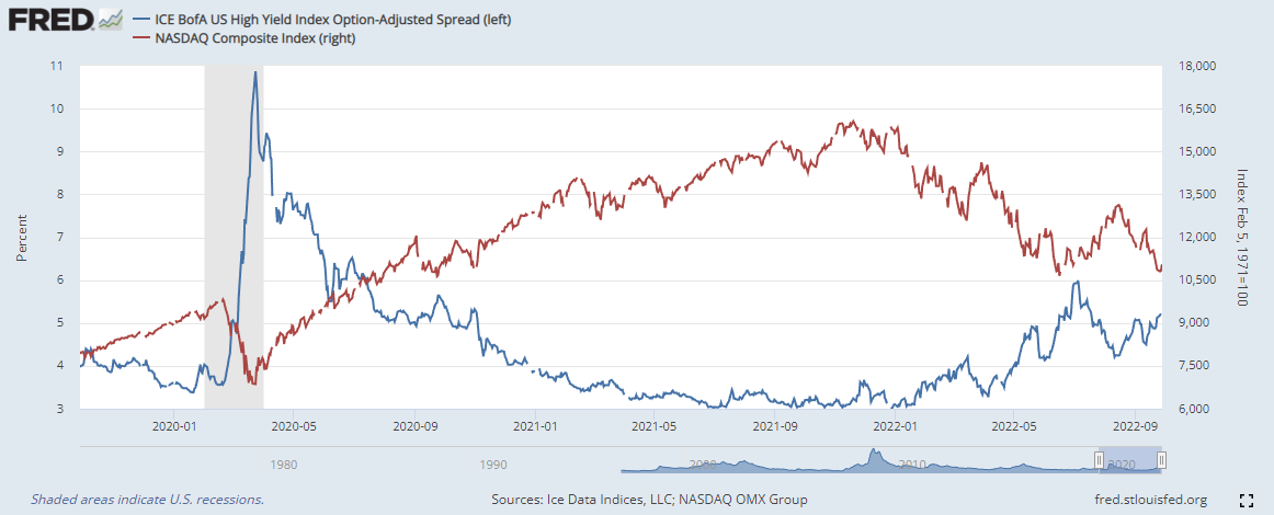 하이일드 채권 스프레드 : 하이일드 채권 수익률 에서 국채 수익률을 뺀 값으로, 이 값이 상승하면 시장이 위험하다는 신호로 볼 수 있습니다. 4% 이하로 하락해야 시장이 안정적인 것으로 판단합니다.