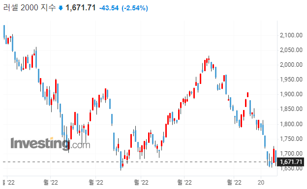 다우 -1.54% / S&P500 -2.11% / 나스닥 -2.84% / 러셀 2000 -2.54%