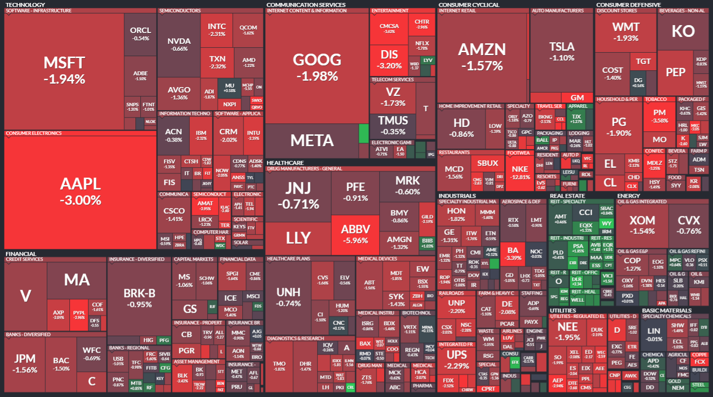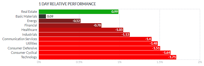 따라서, 이러한 주택 시장의 냉각은 개별 기업에도 영향을 미치며, 현재 부동산(real estate) 섹터의 하락을 이끌고 있는 모습입니다.