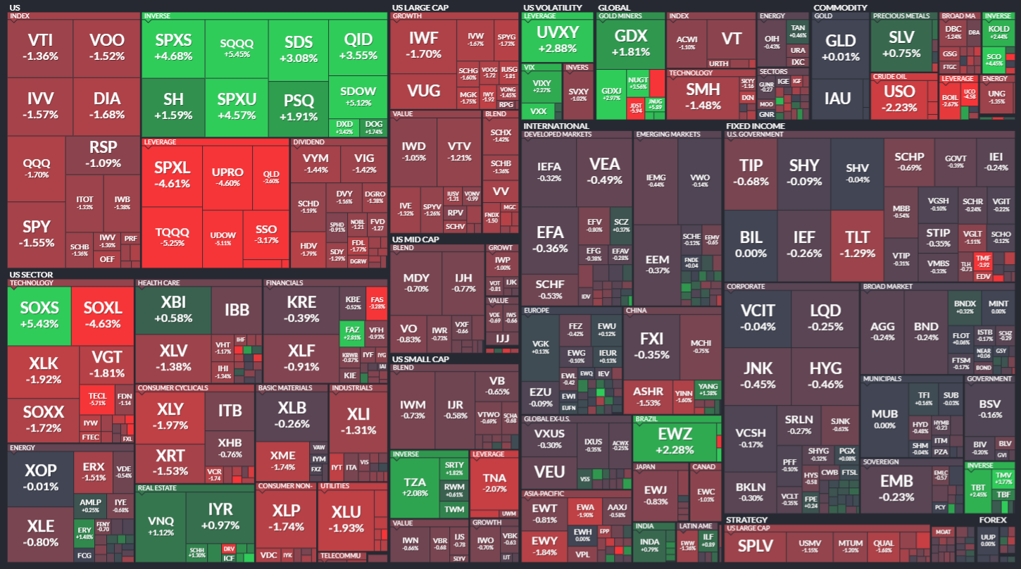 미국 ETF의 등락률을 통해서 시장의 흐름을 살펴봅니다. 특히 주가 MAP과는 다르게 채권이나 원자재, 개발도상국 지수 추종 ETF 등도 살펴볼 수 있기 때문에 좀 더 큰 시장의 흐름을 알 수 있습니다.