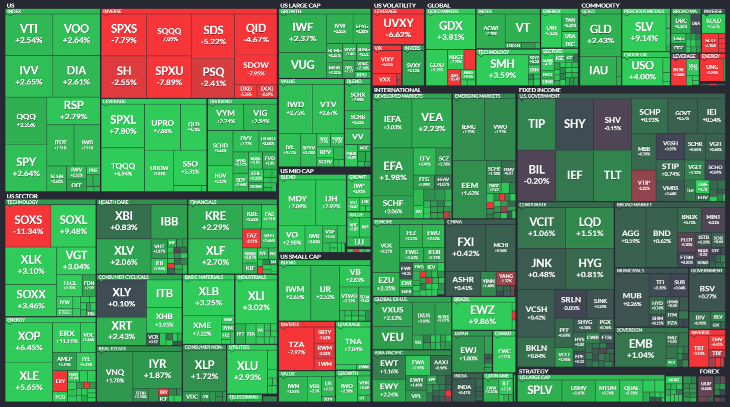 미국 ETF의 등락률을 통해서 시장의 흐름을 살펴봅니다. 특히 주가 MAP과는 다르게 채권이나 원자재, 개발도상국 지수 추종 ETF 등도 살펴볼 수 있기 때문에 좀 더 큰 시장의 흐름을 알 수 있습니다.