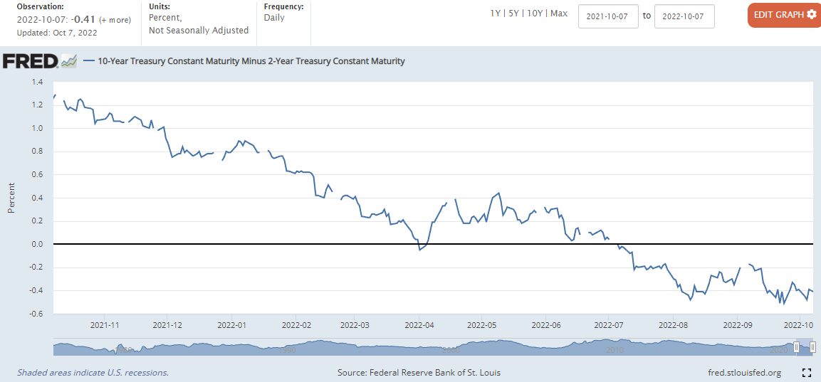 -0.40%에서 0.01하락한 -0.41마감 (22년 4월 1일과 7월 6일 장단기 금리차 역전)