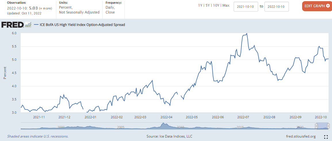 하이일드 채권 스프레드 : 하이일드 채권 수익률 에서 국채 수익률을 뺀 값으로, 이 값이 상승하면 시장이 위험하다는 신호로 볼 수 있습니다. 4% 이하로 하락해야 시장이 안정적인 것으로 판단합니다.