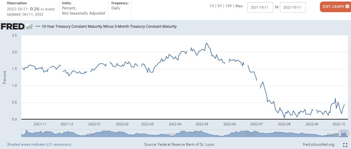 10년물과 3개월물 금리차