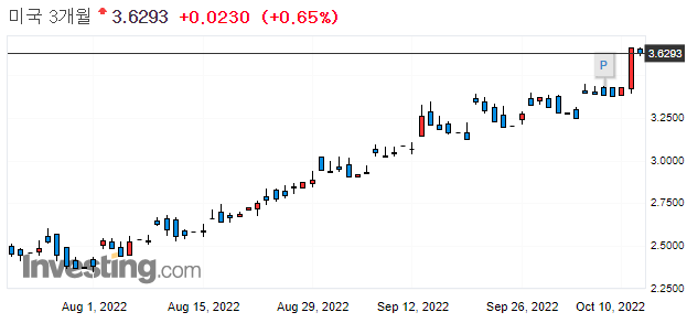 초 단기 금리(3개월 물) : 단기적인 자금 유통과 관련됩니다. 급등은 단기적 시장 위험을 의미