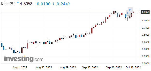 → 10월 4일 현재 11월에 75bp 금리 인상을 예상하는 예상치가 크게 상승한 상황입니다. 아무래도, 샌프란시스코 연은 총재의 발언(연준은 미국을 먼저 고려한다.)이 다른 나라의 상황과는 상관없이 미국은 긴축 기조를 이어갈 것이라고 시장은 받아들인 것 같습니다.