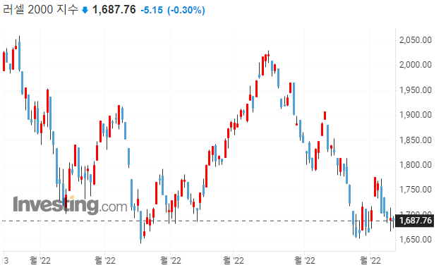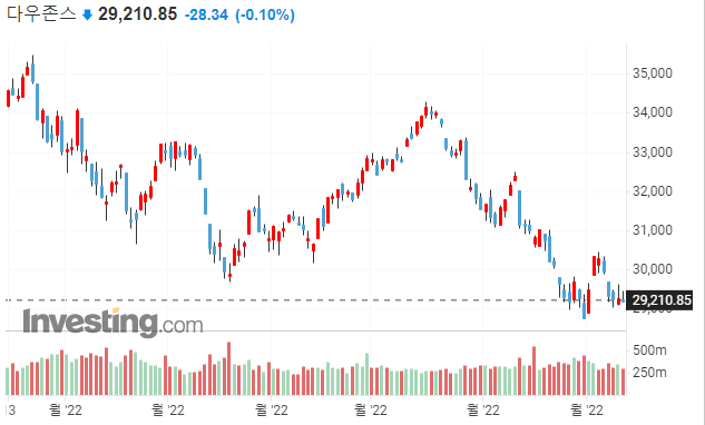 다우 -0.10% / S&P500 -0.33% / 나스닥 -0.09% / 러셀 2000 -0.30%