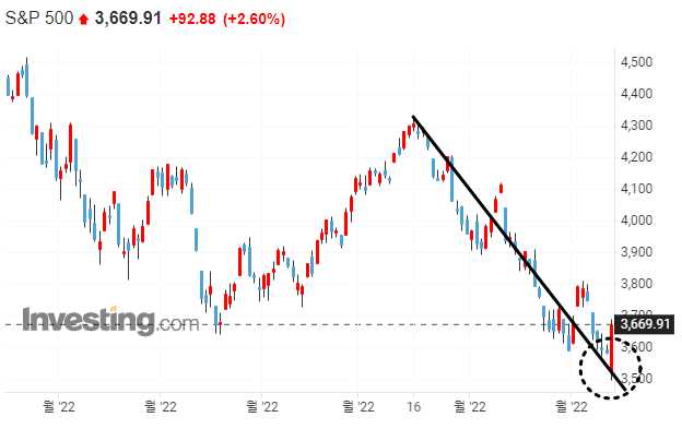4. 11일 화요일에 말씀 올렸던 것 처럼 기술적 분석상 하락 추세선 상단에 도달 한 상황이였으므로, 추세 전환을 한다면, 지금 시점에 반등이 나오는게 기술적 분석상 정석적인 차트 모습이였습니다.