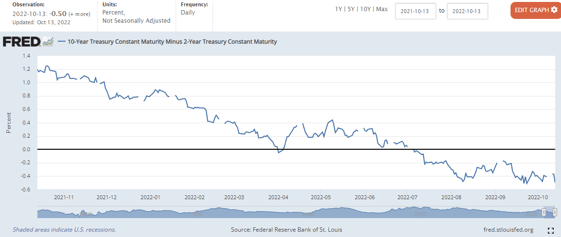 -0.37%에서 0.13하락한 -0.50마감 (22년 4월 1일과 7월 6일 장단기 금리차 역전)