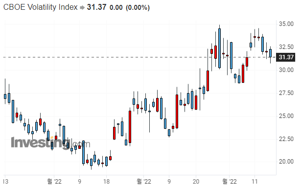 → 10월 11일 VIX가 주요한 위치에 도달하였습니다. 여기서 직전 고점을 넘지 않는다면, 이후 시장의 상승을 예상할 수 있습니다.