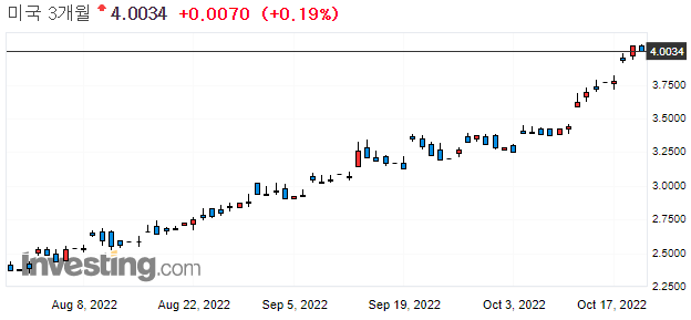초 단기 금리(3개월 물) : 단기적인 자금 유통과 관련됩니다. 급등은 단기적 시장 위험을 의미