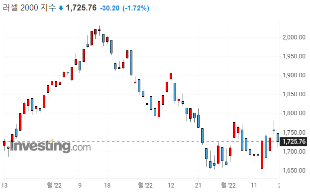 다우 -0.33% / S&P500 -0.67% / 나스닥 -0.85% / 러셀 2000 -1.72%