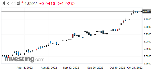 10년물 국채 수익률 4.208 / 2년물 국채 수익률 4.4658 / 3개월물 국채 수익률 4.0331
