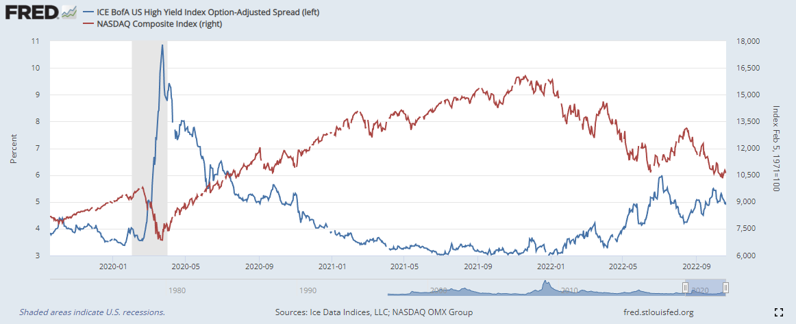 하이일드 채권 스프레드 : 하이일드 채권 수익률 에서 국채 수익률을 뺀 값으로, 이 값이 상승하면 시장이 위험하다는 신호로 볼 수 있습니다. 4% 이하로 하락해야 시장이 안정적인 것으로 판단합니다.