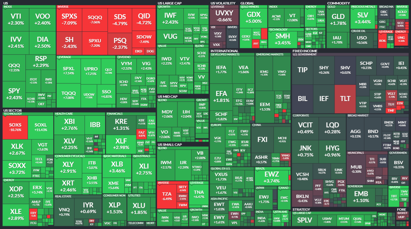 미국 ETF의 등락률을 통해서 시장의 흐름을 살펴봅니다. 특히 주가 MAP과는 다르게 채권이나 원자재, 개발도상국 지수 추종 ETF 등도 살펴볼 수 있기 때문에 좀 더 큰 시장의 흐름을 알 수 있습니다.