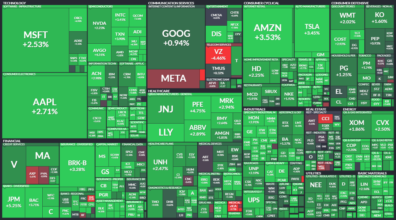 미국 S&P500에 속한 기업들의 주가 등락을 살펴봅니다. 같은 섹터 내에서도 개별 기업 이슈로 인해 주가가 서로 다르게 움직이는 것을 볼 수 있습니다. 특히 섹터 내 대장주, 주도주의 움직임을 통해 해당 섹터의 성장성을 가늠해보기 좋습니다.