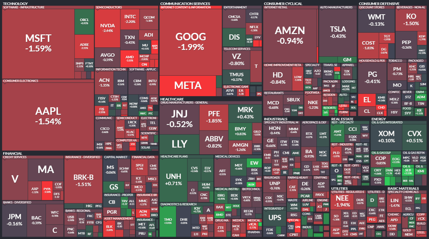 미국 S&P500에 속한 기업들의 주가 등락을 살펴봅니다. 같은 섹터 내에서도 개별 기업 이슈로 인해 주가가 서로 다르게 움직이는 것을 볼 수 있습니다. 특히 섹터 내 대장주, 주도주의 움직임을 통해 해당 섹터의 성장성을 가늠해보기 좋습니다.