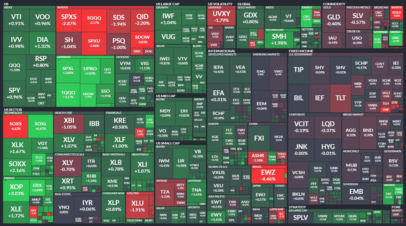 미국 ETF의 등락률을 통해서 시장의 흐름을 살펴봅니다. 특히 주가 MAP과는 다르게 채권이나 원자재, 개발도상국 지수 추종 ETF 등도 살펴볼 수 있기 때문에 좀 더 큰 시장의 흐름을 알 수 있습니다.