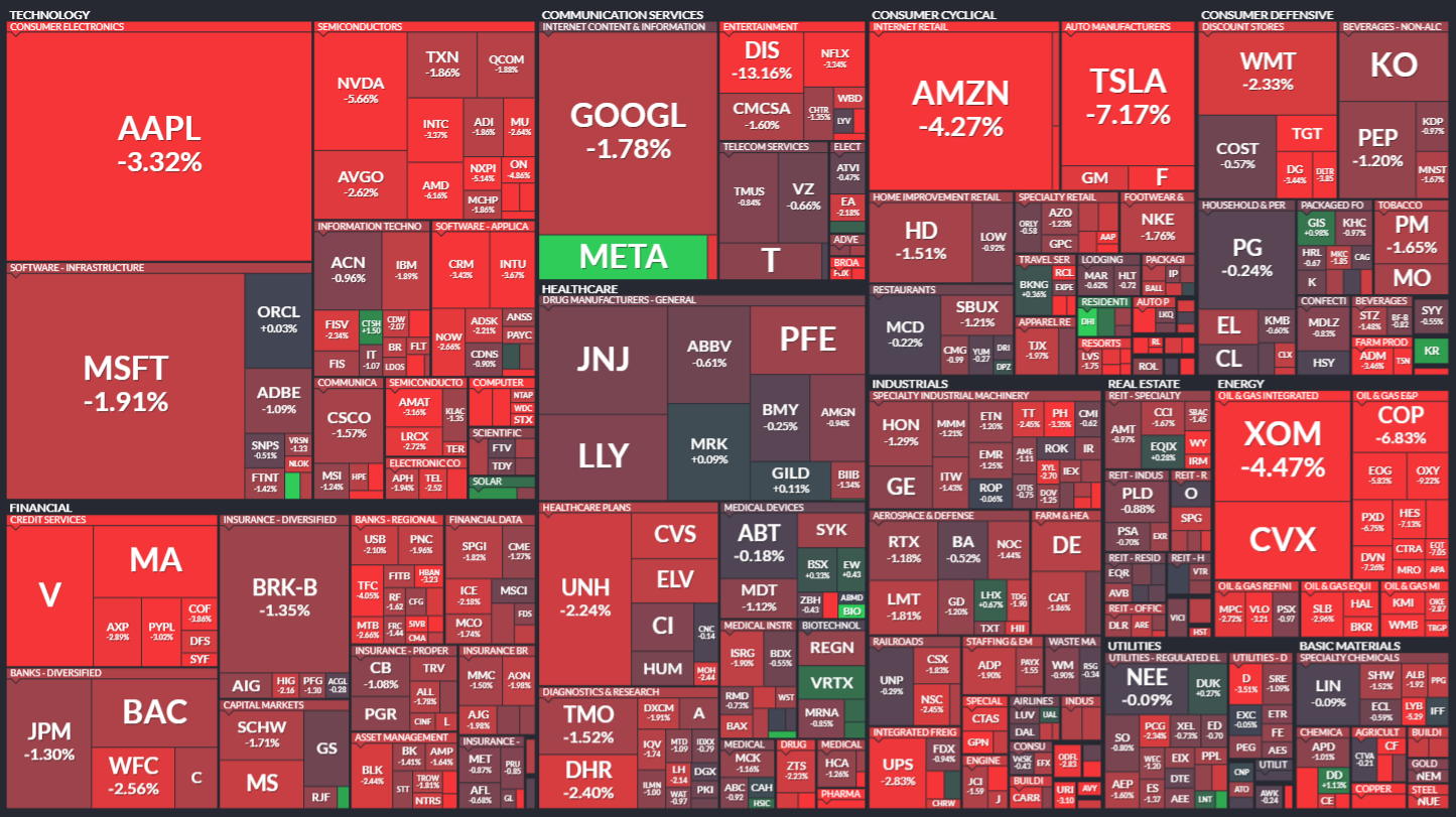 미국 S&P500에 속한 기업들의 주가 등락을 살펴봅니다. 같은 섹터 내에서도 개별 기업 이슈로 인해 주가가 서로 다르게 움직이는 것을 볼 수 있습니다. 특히 섹터 내 대장주, 주도주의 움직임을 통해 해당 섹터의 성장성을 가늠해보기 좋습니다.