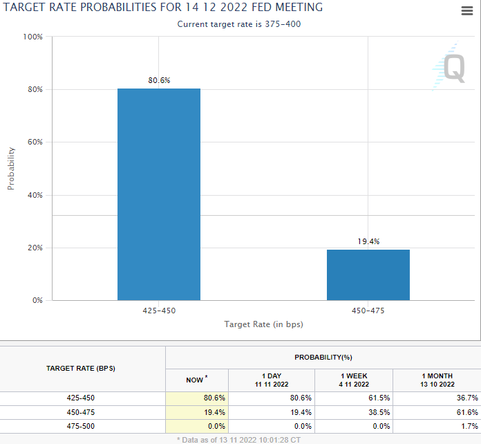 → 11월 10일 미국의 소비자물가지수(CPI)가 예상치를 하회하였습니다.