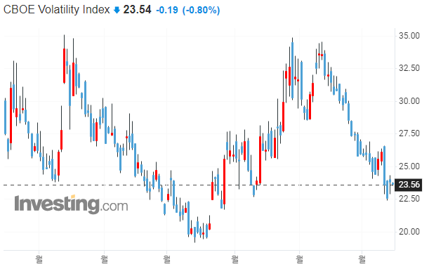 → 11월 10일 VIX지수가 크게 하락하였습니다. 미국 소비자물가지수가 예상치보다 낮게 발표되면서, 인플레이션이 꺾이고 있다는 주장에 힘이 실리는 모습입니다.