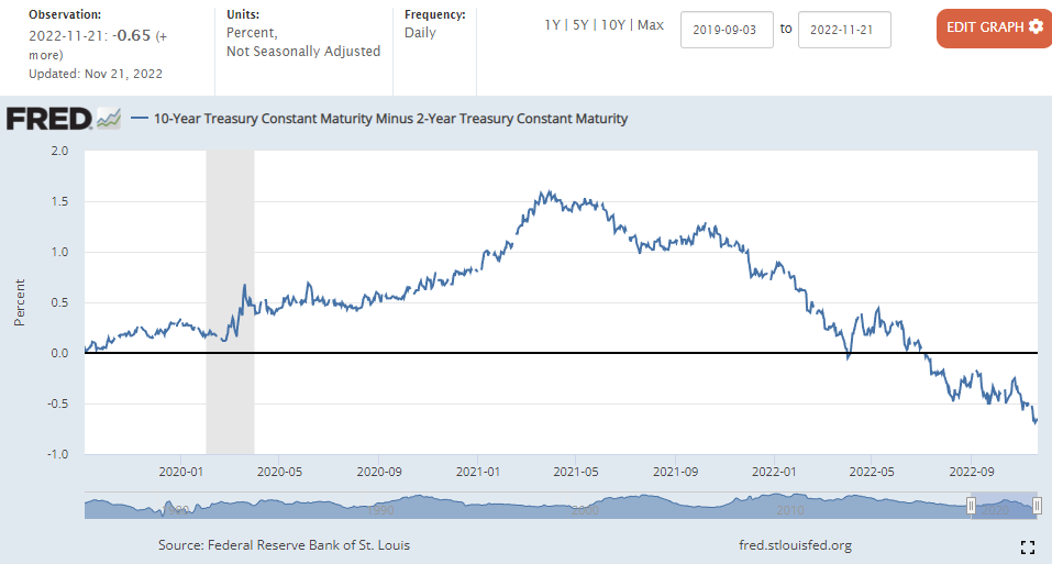 -0.69%에서 0.04상승한 -0.65마감 (22년 4월 1일과 7월 6일 금리차 역전)